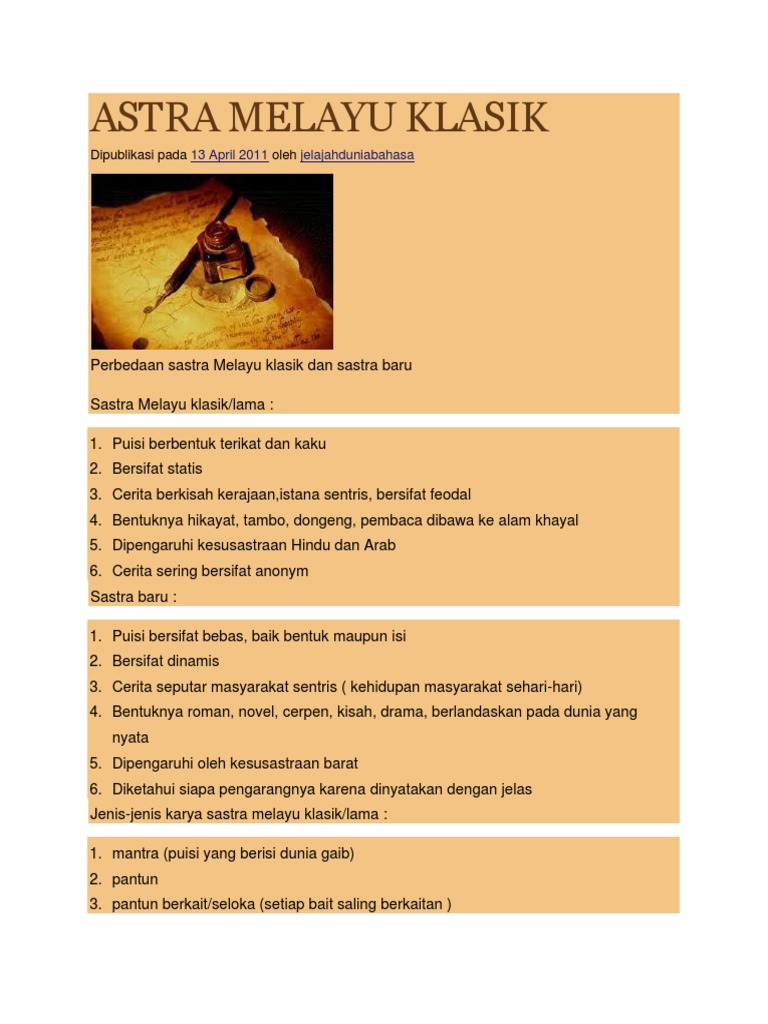 Contoh Sastra Melayu Klasik Pengertian Karakteristik Dan Contoh